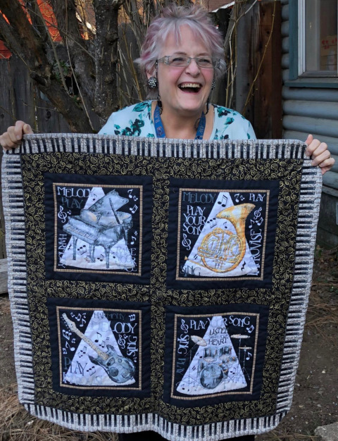 Pictured: Virginia Ekonen with a quilt she made and donated to the Leap Day Spaghetti Feed silent auction.